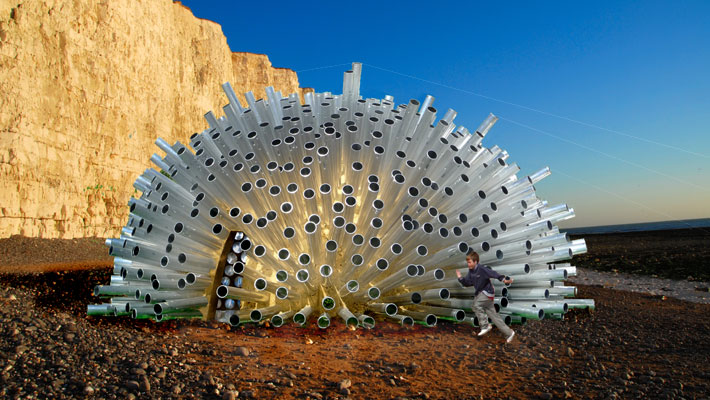 Jerram, the artist behind the plethora of pianos, has produced some interesting art, from intricate glass models of viruses and microbes, to this wind pavilion, below, which looks and possibly sounds far more interesting than passing one of his dingy pianos and hearing someone droning out their down-tempo version of "Bridge Over Troubled Water."